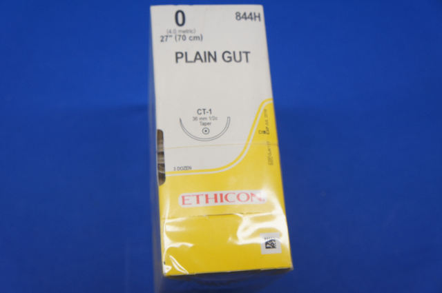 Ethicon 844H Plain Gut, Taper Point, Absorbable, CT-1 36mm, Plain Monofilament 18" 45cm, Size: 0
