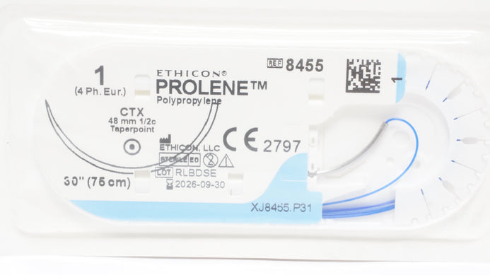 - Ethicon 8455 1 Prolene Polypropylene Stre CTX, 48mm 1/2c Taperpoint, 30inch