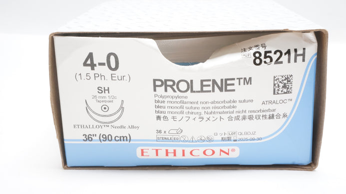- Ethicon 8521H 4-0 PROLENE, SH, 26mm 1/2c Taper, 36inch - Box of 36