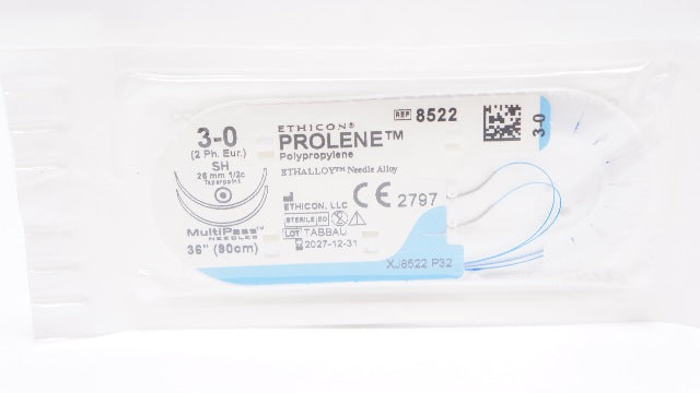 - Ethicon 8522 3-0 PROLENE Polypropylene Stre SH 26mm 1/2c Taperpoint, 36inch