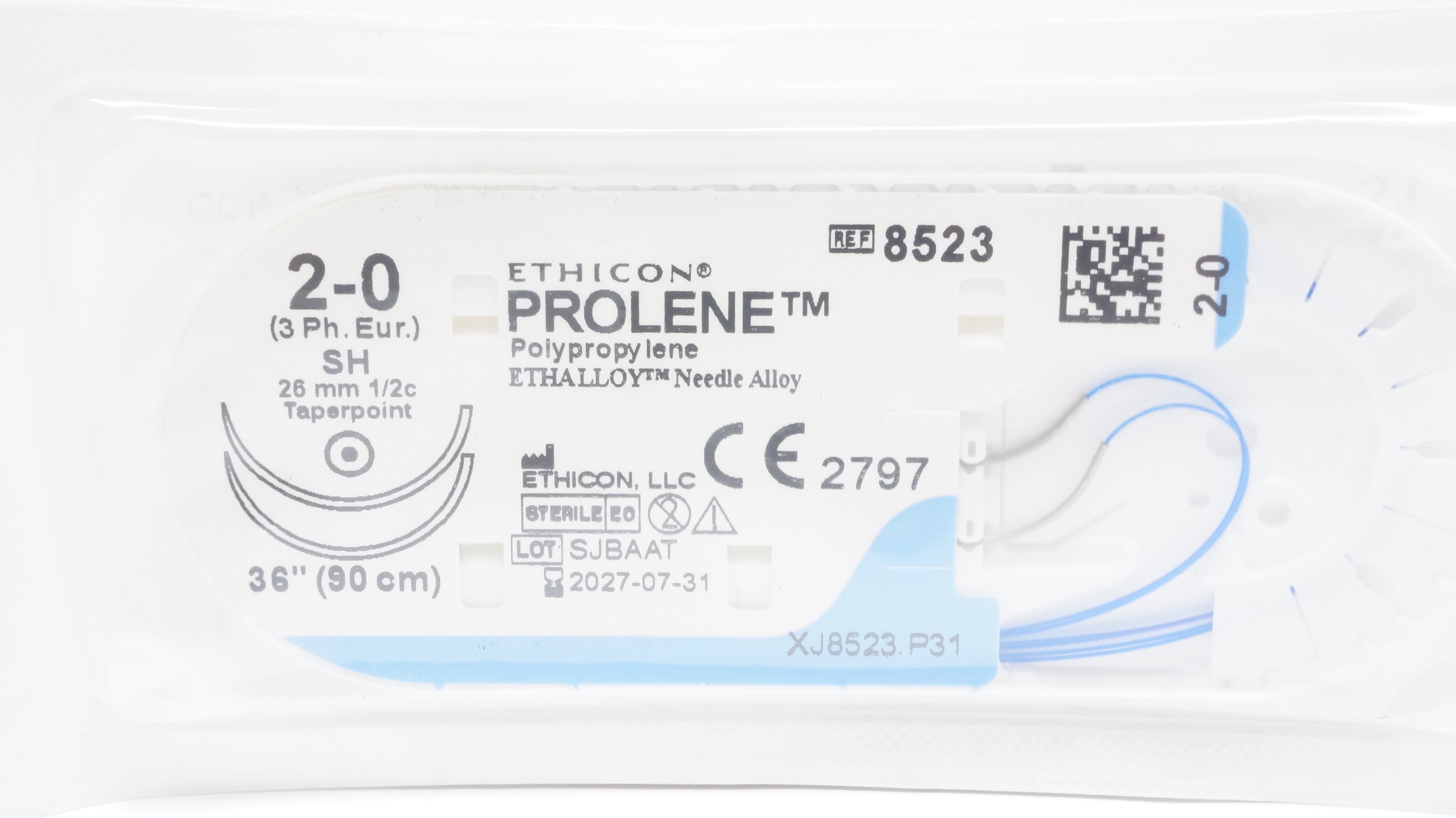 - Ethicon 8523 2-0 Prolene Polypropylene Stre SH 26mm 1/2c Taperpoint, 36inch