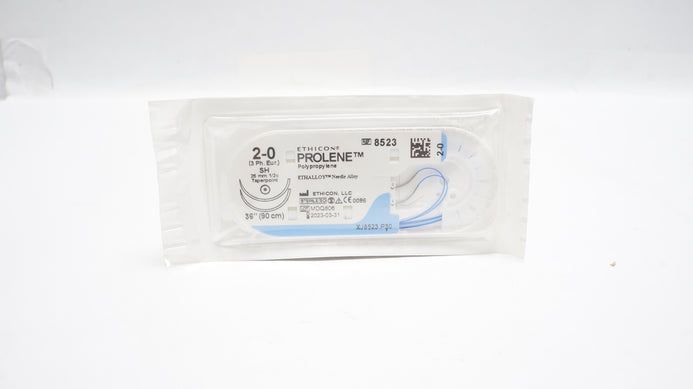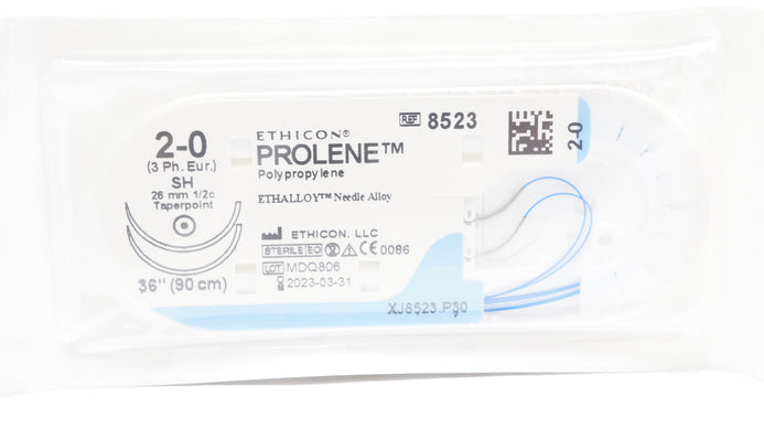 - Ethicon 8523 2-0 PROLENE Polypropylene Stre SH 26mm 1/2c Taperpoint, 36inch (x)