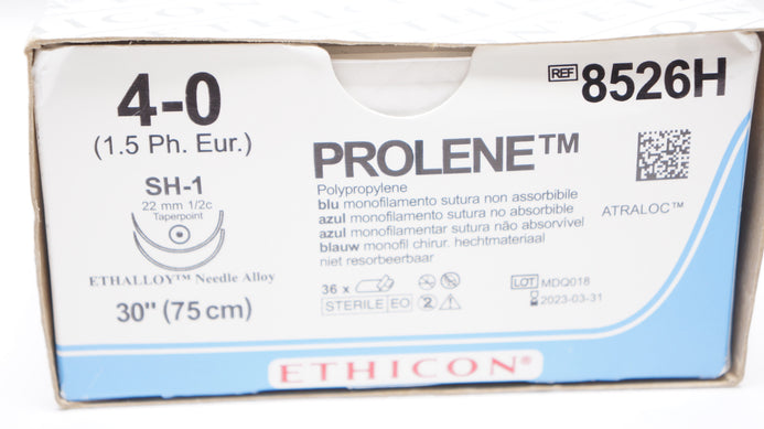 Ethicon 8526H 4-0 PROLENE, SH-1 22mm 1/2c Taper, 30inch (x) - Box of 36