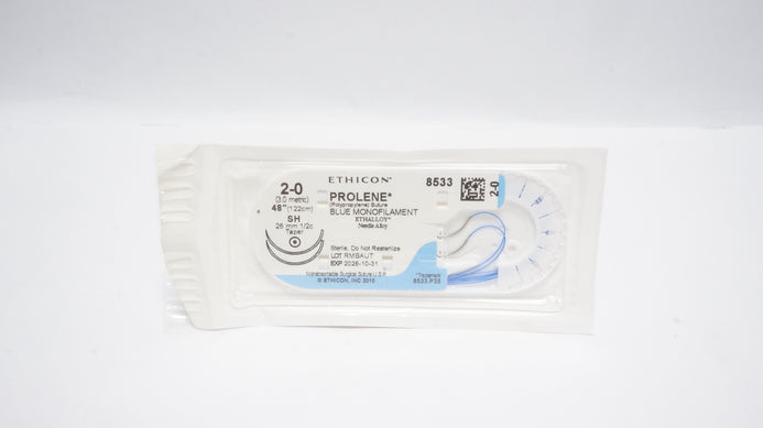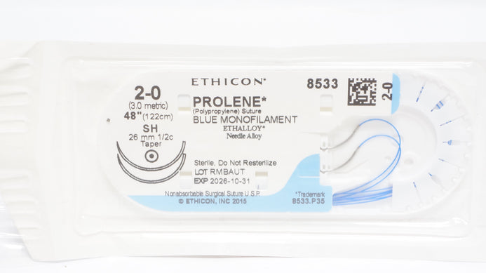 - Ethicon 8533 2-0 PROLENE Polypropylene Stre SH, 26mm 1/2c Taper, 48inch