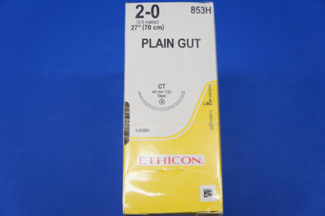 Ethicon 853H Plain Gut, Taper Point, Absorbable, CT 40mm, Plain Monofilament 18" 45cm, Size: 2-0