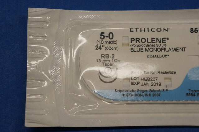 Ethicon 8554 PROLENE, RB-2 13mm 1/2c Taper, 24", Size 5-0