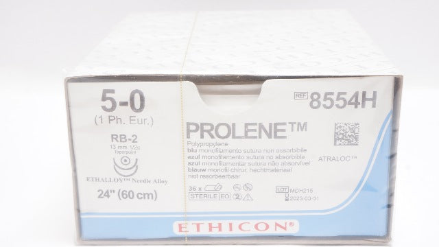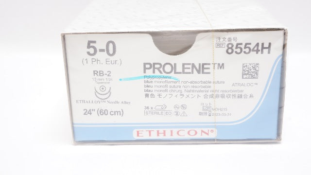 - Ethicon 8554H 5-0 PROLENE Stre RB-2 13mm 1/2c Taper 24inch (x) - Box of 36