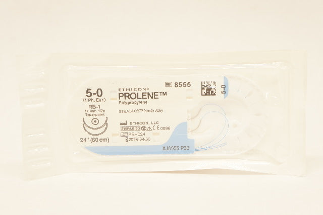 - Ethicon 8555 5-0 PROLENE Stre RB-1 17mm 1/2c Taper 24 inch