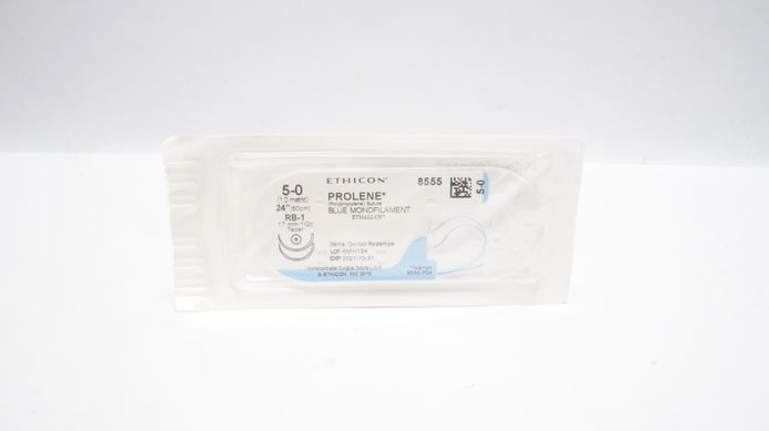 Ethicon 8555 5-0 PROLENE Polypropylene Suture Blue Monofilament RB-1 17mm 1/2c Taper 24 inch