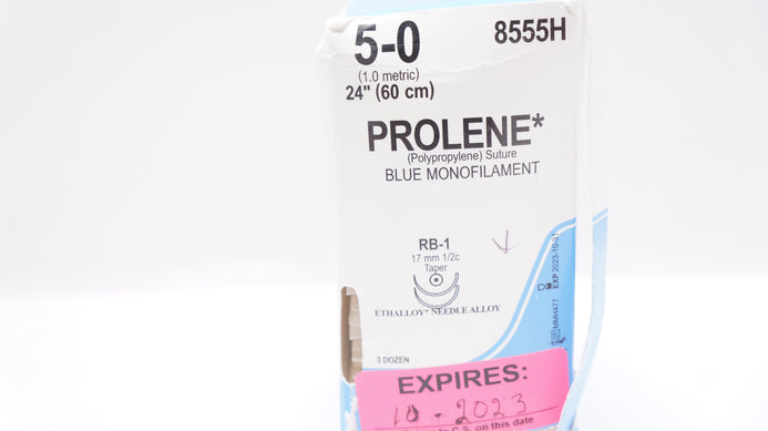Ethicon 8555H 5-0 Prolene Stre RB-1 17mm 1/2c Taper, 24inch (x) - Box of 28