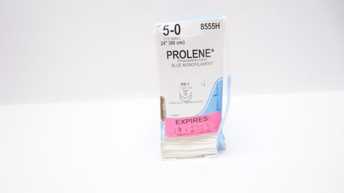 Ethicon 8555H 5-0 Prolene Polypropylene Suture Blue Monofilament RB-1 17mm 1/2c Taper, 24inch