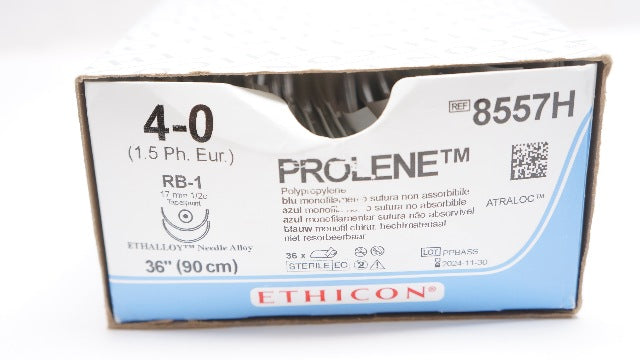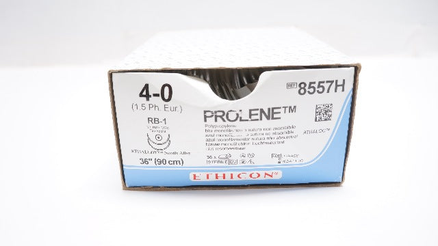 - Ethicon 8557H 4-0 PROLENE Stre RB-1 17mm 1/2c Taperpoint 36 inch - Box of 21
