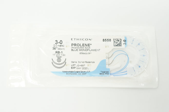 - Ethicon 8558 3-0 PROLENE, RB-1, 17mm 1/2c Taper, 36inch (x)