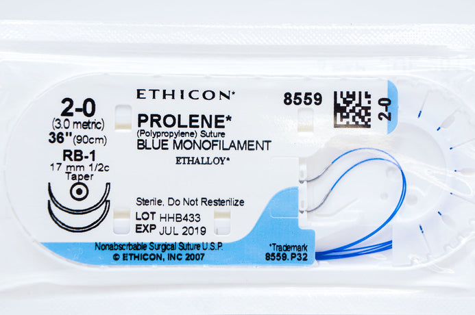 Ethicon 8559 2-0 PROLENE, RB-1 17mm 1/2c Taper, 36inch