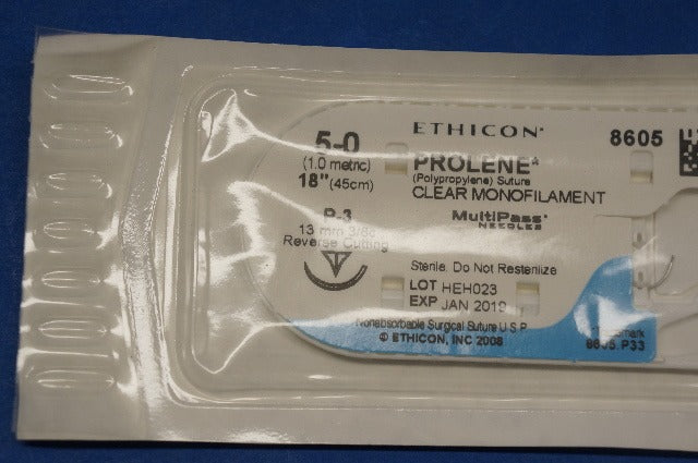 Ethicon 8605 PROLENE, P-3 13mm 3/8c Reverse Cutting, 18", Size 5-0