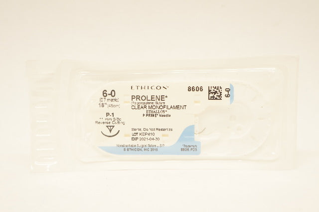 Ethicon 8606 6-0 PROLENE P-1 11mm 3/8c Reverse Cutting Clear Monofilament 18in(x)