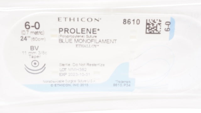 Ethicon 8610 6-0 PROLENE Suture BV 11mm 3/8c Taper 24inch