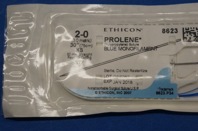 Ethicon 8623 2-0 PROLENE, KS 60mm Straight Reverse Cutting, 30