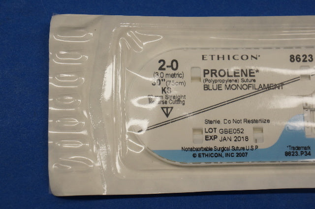 Ethicon 8623 PROLENE, KS 60mm Straight Reverse Cutting, 30", Size 2-0