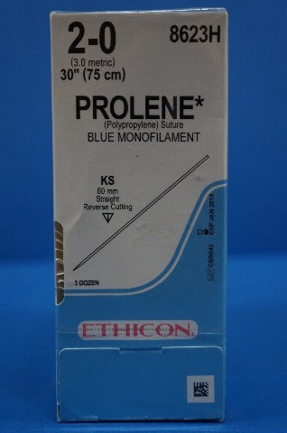 Ethicon 8623H PROLENE, Straight Cutting Needles, Non-Absorbable, KS 60mm Straight, Blue Monofilament 30" 75cm, Size: 2-0