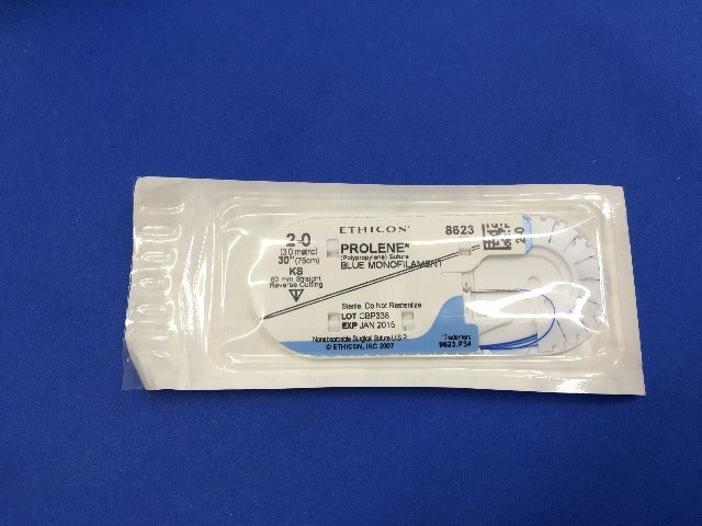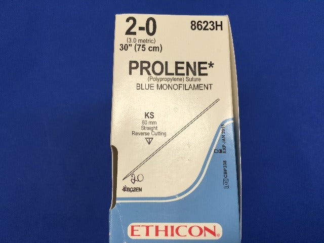 Ethicon 8623H PROLENE, Straight Cutting Needles, Non-Absorbable, KS 60mm Straight, Blue Monofilament 30" 75cm, Size: 2-0