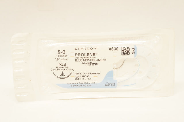 Ethicon 8630 5-0 PROLENE, PC-5, 19mm 3/8c, Conventional Cutting, 18inch