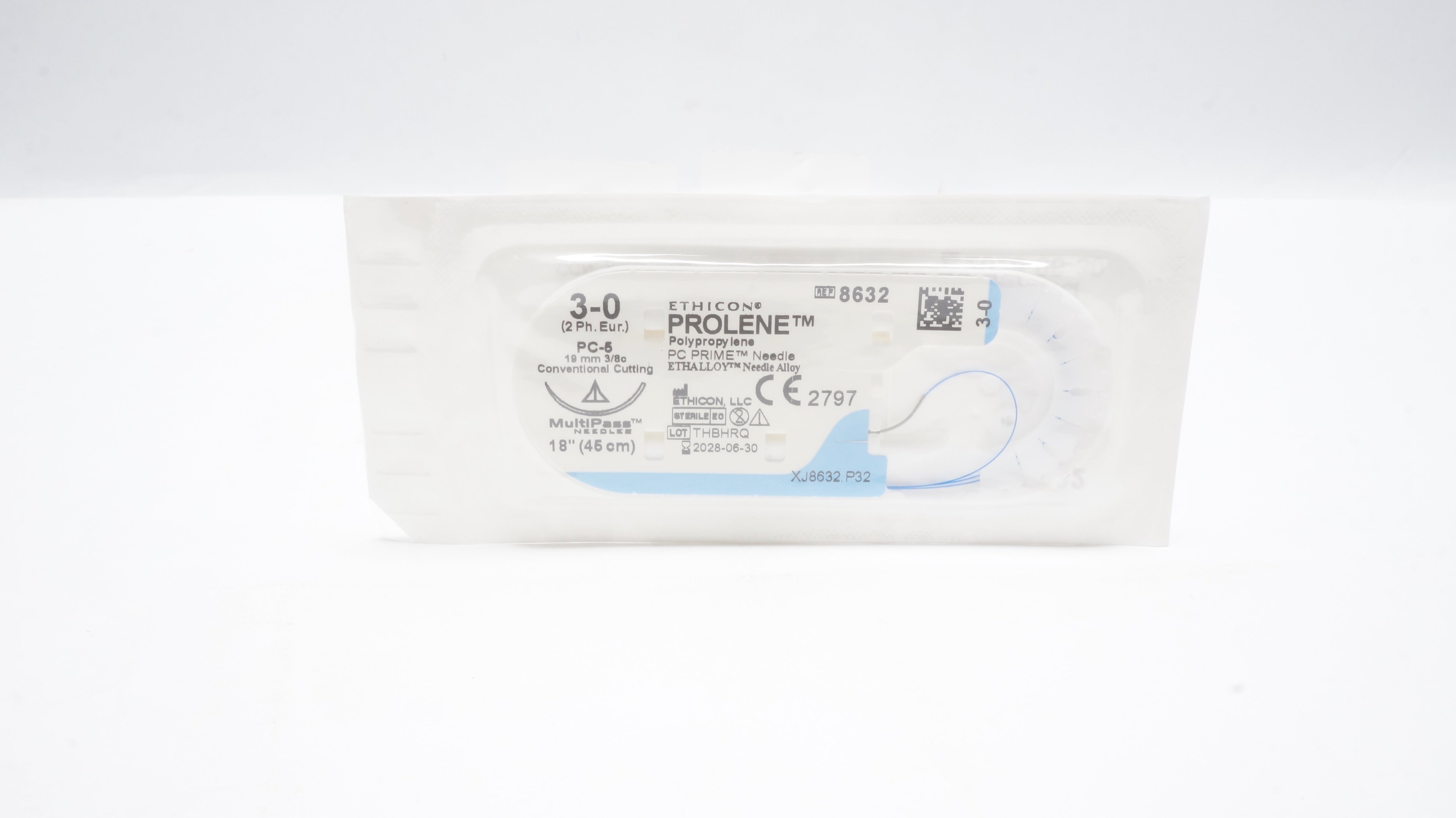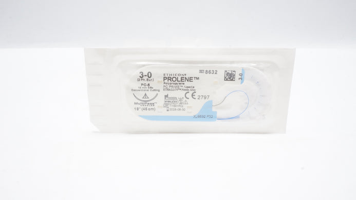 Ethicon 8632 3-0 PROLENE Polypropylene Suture Blue Monofialment PC-5 19mm 3/8c Convertional Cutting, 18inch