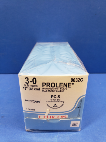 Ethicon 8632G 3-0 PROLENE, PC-5, 19mm 3/8c, MultiPass, 18in. (x) ~ Box of 12