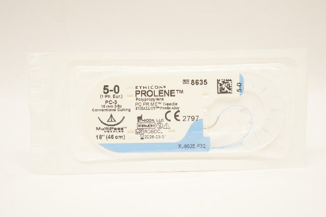 Ethicon 8635 5-0 PROLENE Polypropylene Suture PC-3, 16mm 3/8c Conventional Cutting, 18 inch