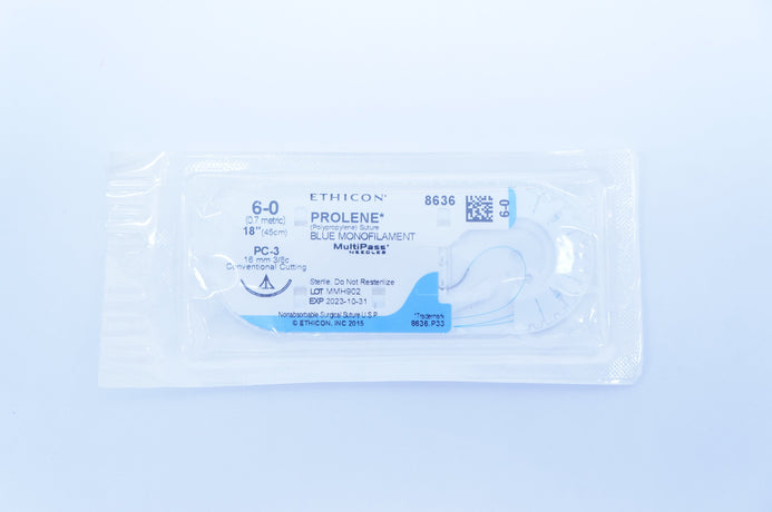 - Ethicon 8636 6-0 PROLENE, PC-3, 16mm 3/8c, MultiPass, 18inch