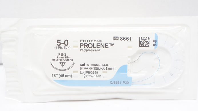 - Ethicon 8661 5-0 PROLENE Stre FS-2 19mm 3/8c Reverse Cutting 18inch (x)