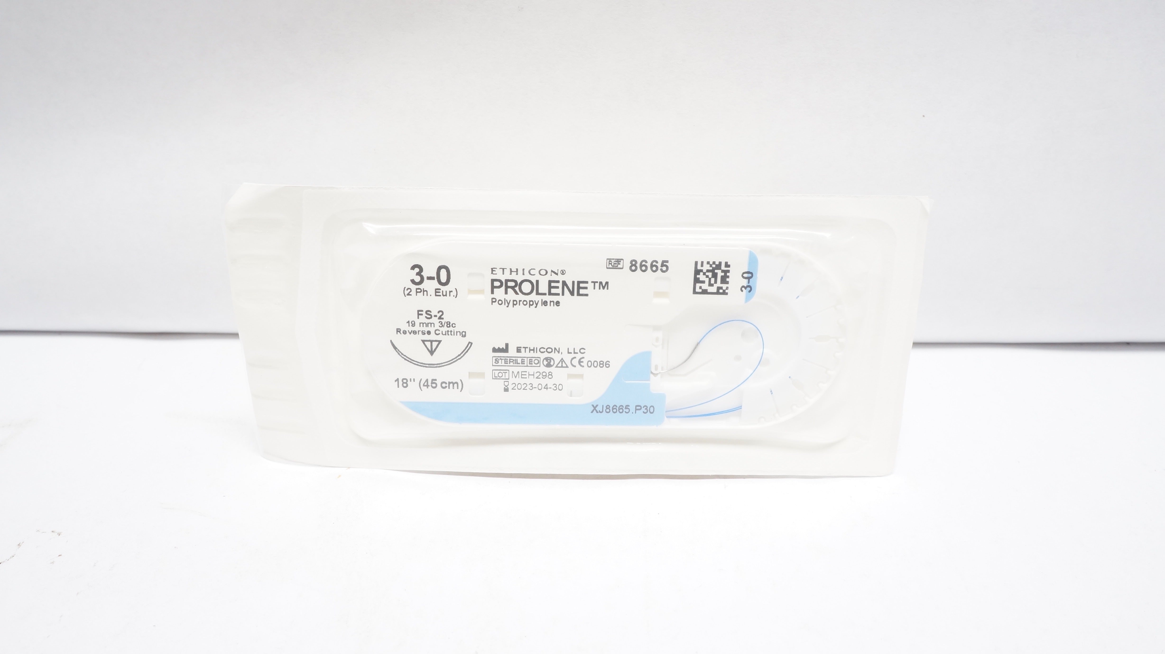 - Ethicon 8665 3-0 PROLENE Stre FS-2 19mm 3/8c Reverse Cutting 18inch (x)