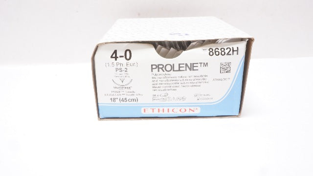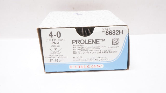 Ethicon 8682H 4-0 PROLENE Polypropylene Suture Blue Monofilament PS-2 19mm 3/8 Reverse Cutting 18inch