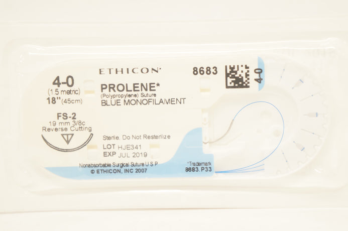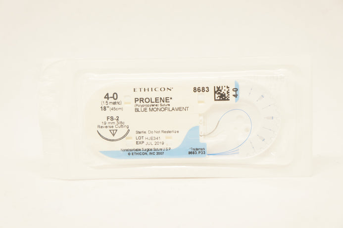 - Ethicon 8683 4-0 PROLENE, FS-2, 19mm 3/8c Reverse Cutting, 18inch (x)