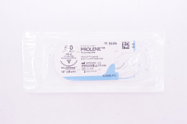 - Ethicon 8686 5-0 PROLENE Stre PS-2 19mm 3/8c Reverse Cutting 18inch