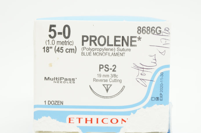 Ethicon 8686G 5-0 PROLENE PS-2, 19mm 3/8c Reverse Cutting, 18in (x) - Box of 12