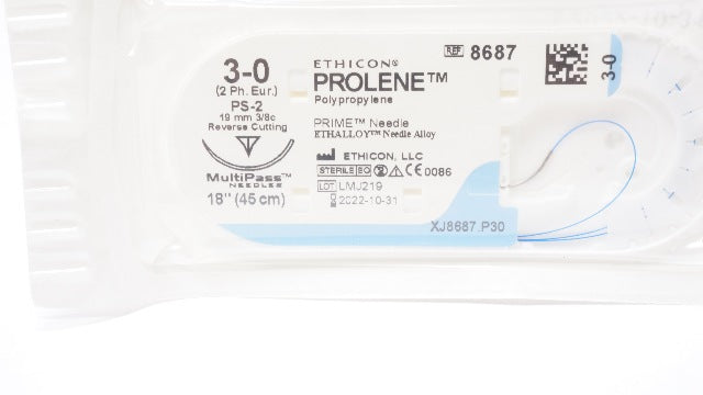 Ethicon 8687 3-0 Prolene Polypropylene PS-2 19mm 3/8c ReverseCutting, 18inch (x)