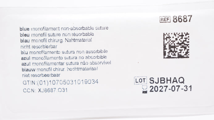 Ethicon 8687 3-0 PROLENE Polypropylene Suture Blue Monofilament PS-2 19mm 3/8c Reverse Cutting 18inch
