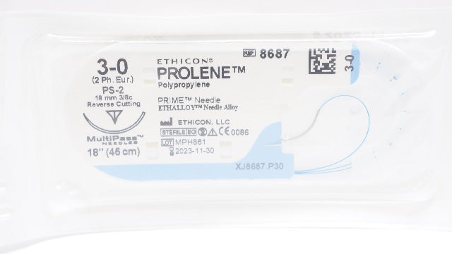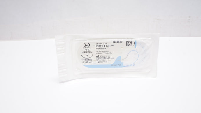 Ethicon 8687 3-0 PROLENE Stre PS-2 19mm 3/8c Reverse Cutting, 18inch (x)