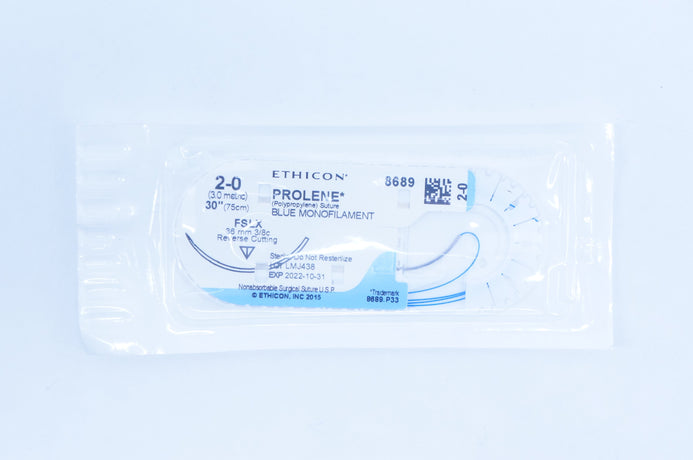 Ethicon 8689 2-0 Prolene (Polypropylene) Suture Blue Monofilament FSLX 36mm 3/8c Reverse Cutting 30 inch
