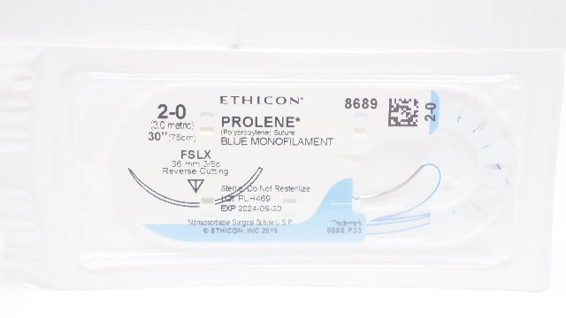Ethicon 8689 2-0 PROLENE Polypropylene Suture Blue Monofilament FSLX 36mm 3/8c Reverse Cutting, 30inch
