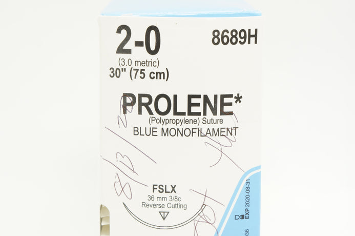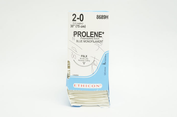 - Ethicon 8689H 2-0 PROLENE FSLX, 36mm 3/8c Reverse Cutting, 30in (x) - Box of 36