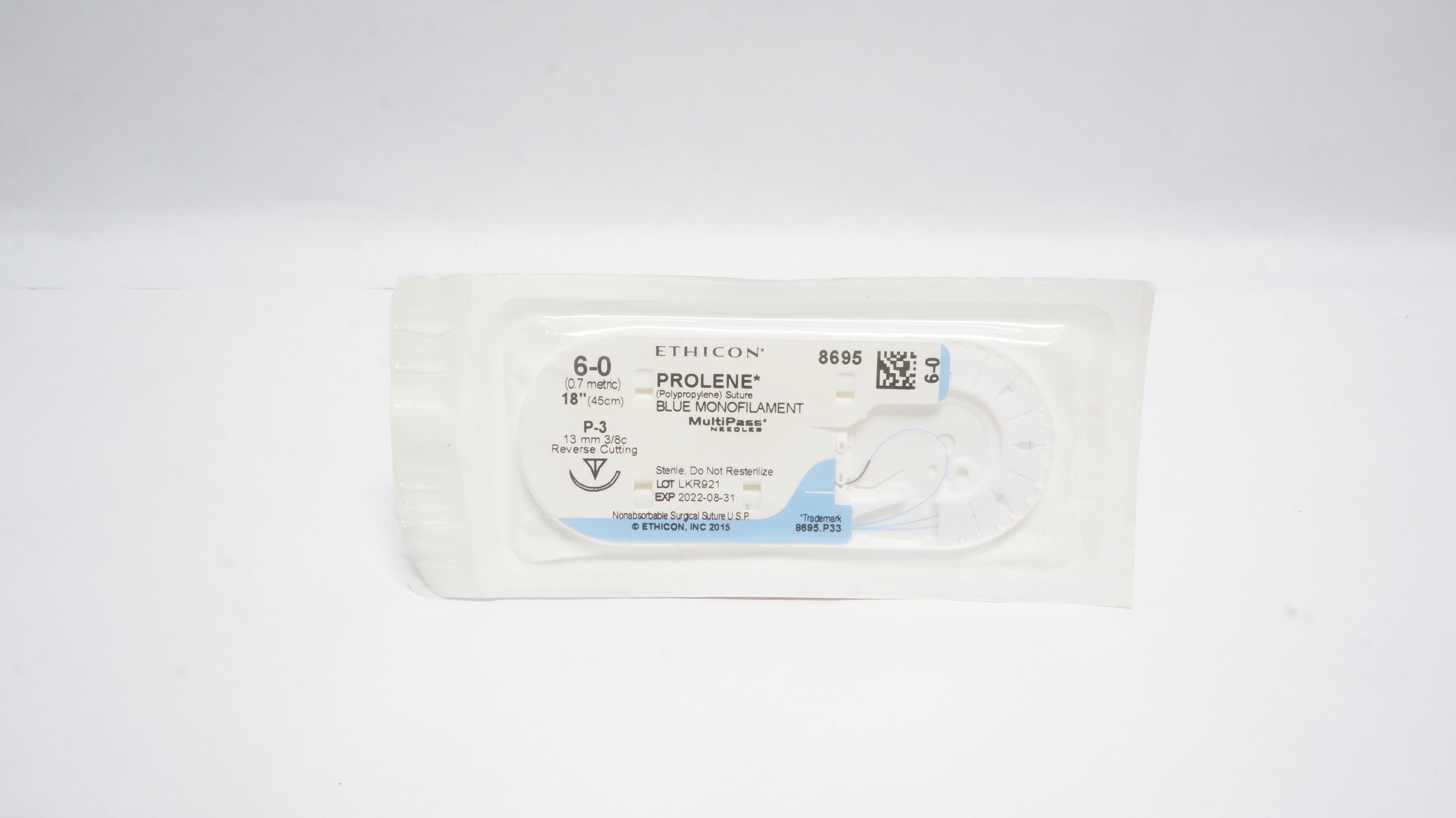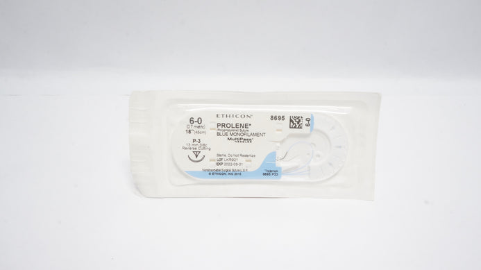 - Ethicon 8695 6-0 PROLENE P-3 13mm 3/8c Reverse Cutting 18 inch (x)
