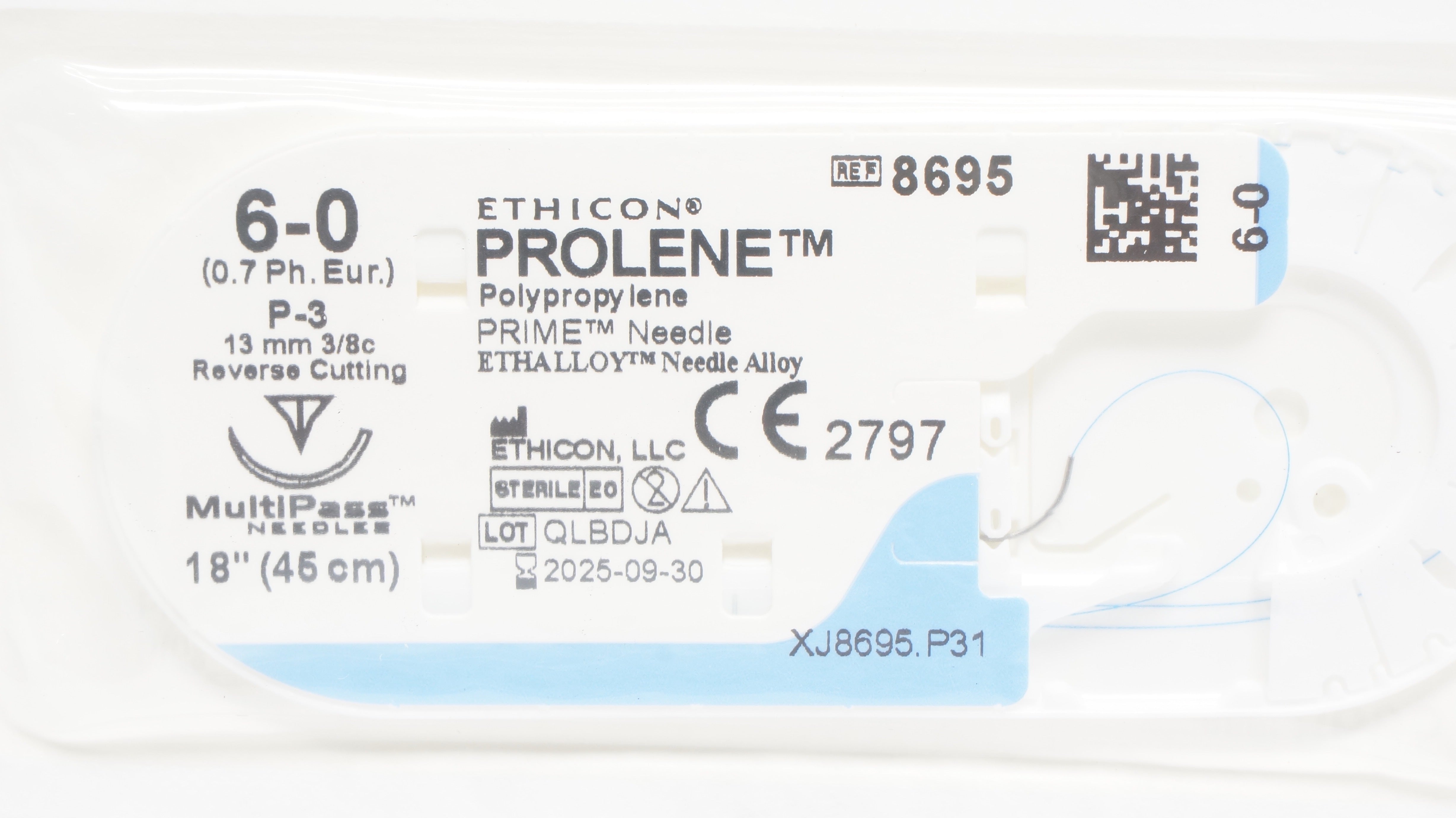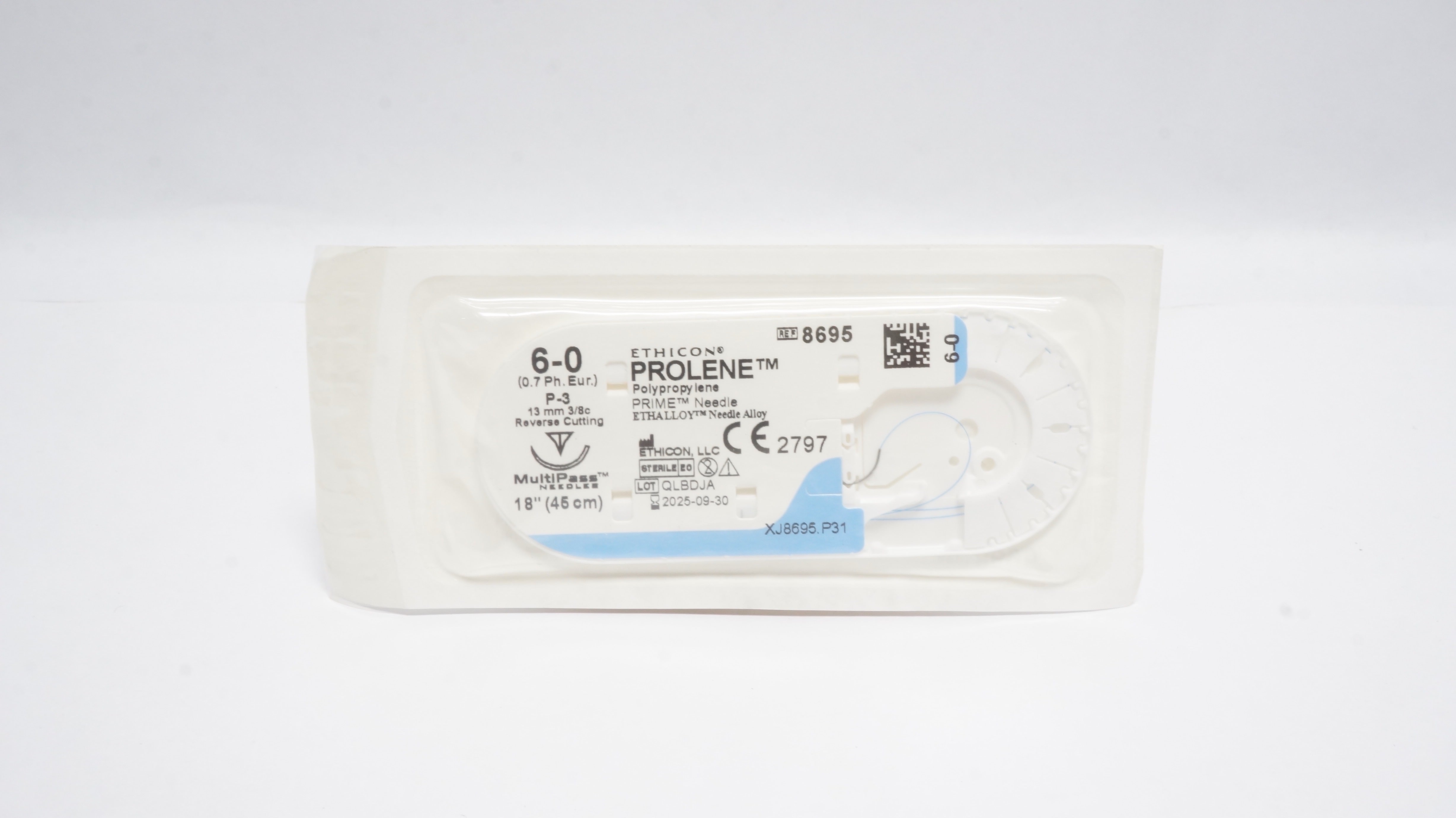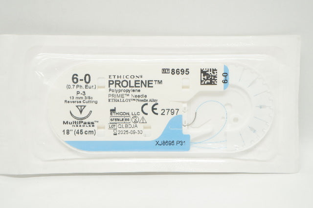 Ethicon 8695 6-0 PROLENE Polypropylene Surgical Suture Blue Monofilament P-3 13mm 3/8c Reverse Cutting, 18inch
