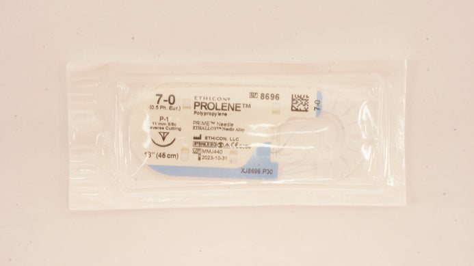Ethicon 8696 7-0 PROLENE Polypropylene Suture Blue Monofilament P-1 11mm 3/8c Reverse Cutting 18 inch