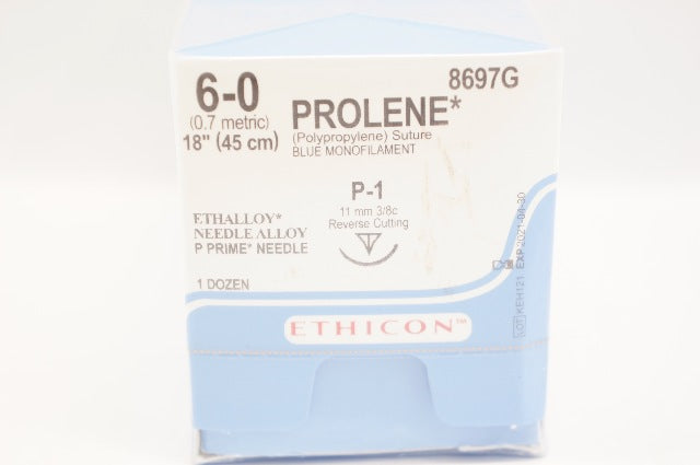 Ethicon 8697G 6-0 PROLENE P-1 11mm 3/8c Reverse Cutting 18inch - Box of 12 (x)