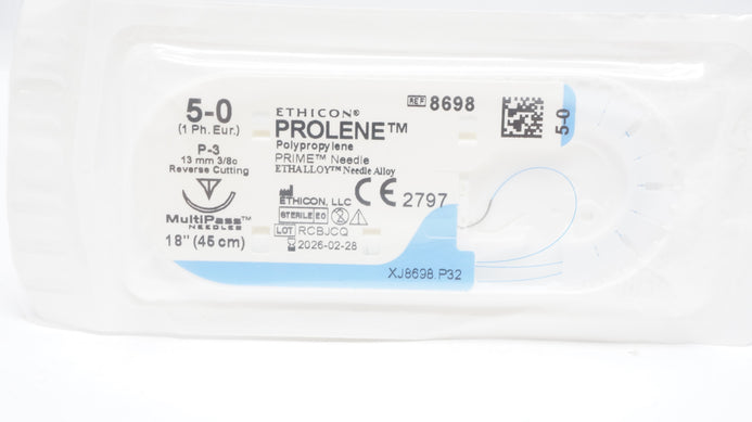 Ethicon 8698 5-0 PROLENE Polypropylene Stre P-3 13mm 3/8c Reverse Cutting 18inch
