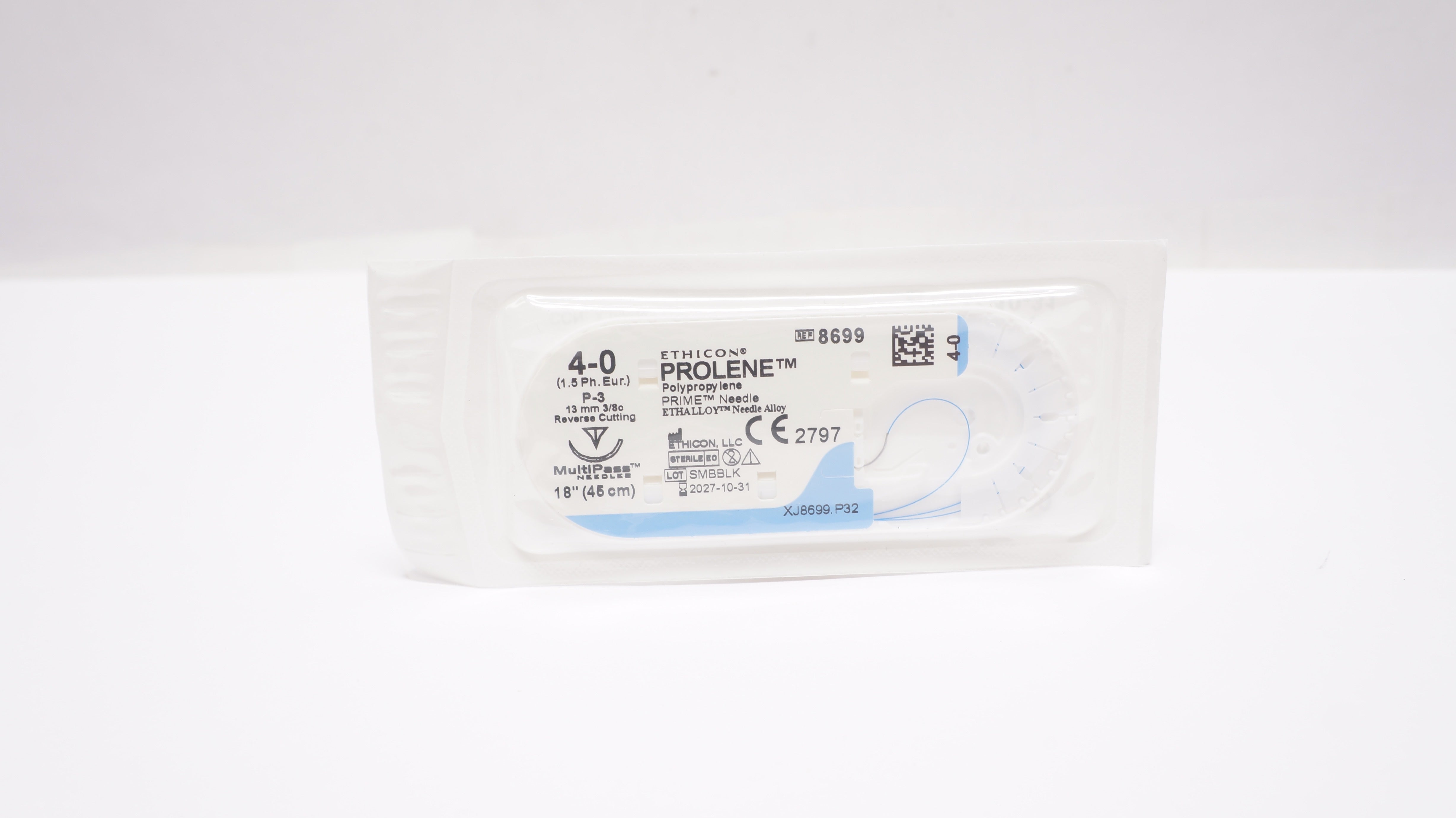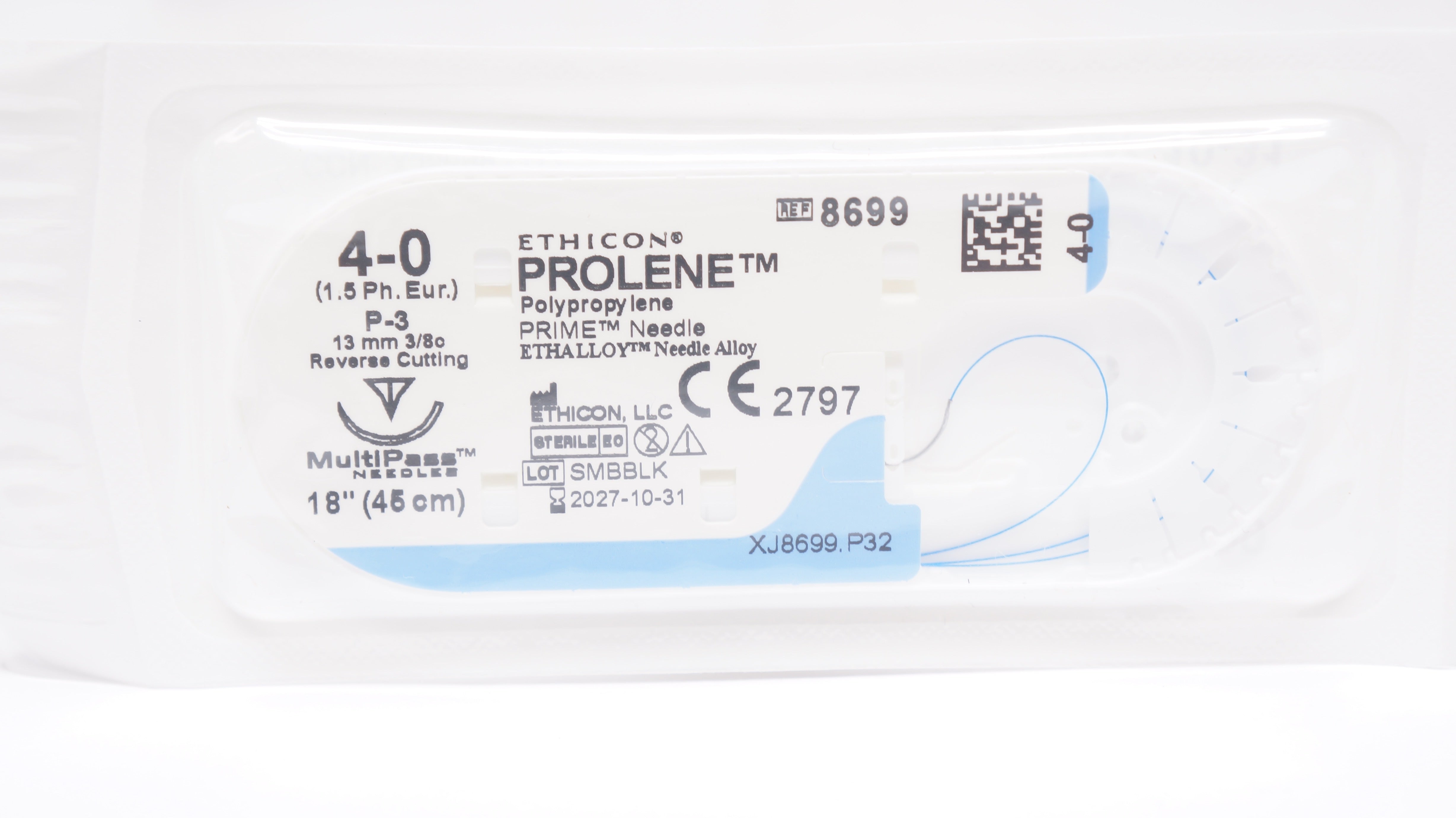 Ethicon 8699 4-0 PROLENE Polypropylene Suture Blue Monofilament P-3, 13mm 3/8c Reverse Cutting, 18inch