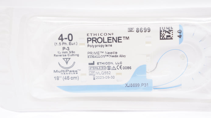 Ethicon 8699 4-0 PROLENE Polypropylene Suture Blue Monofilament P-3, 13mm 3/8c Reverse Cutting, 18inch