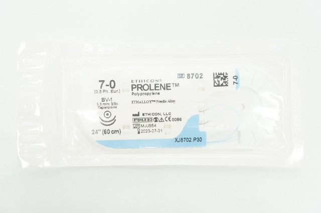 - Ethicon 8702 7-0 PROLENE, BV-1, 9.3mm 3/8c Taperpoint, 24 inch (x)